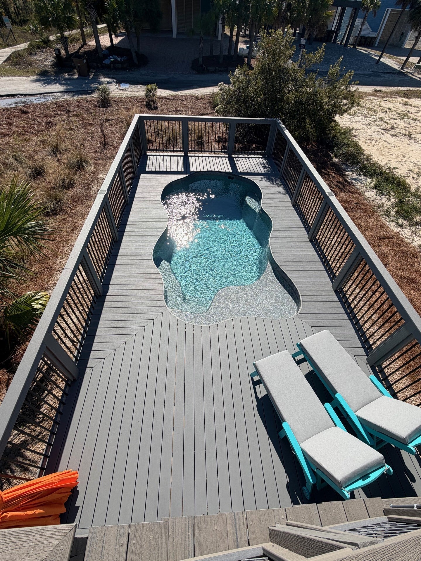 This is the coziest Latham Kingston fiberglass pool perfect for our customers!